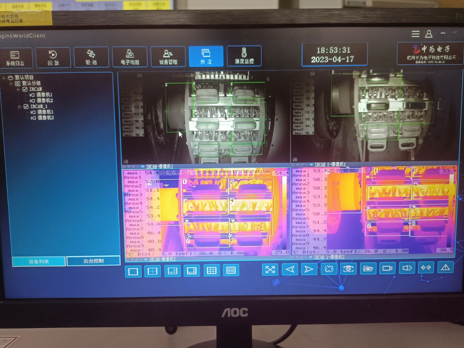 2023年4月,浙江浙能溫州發電有限公司7號機組完成安裝發電機碳刷紅外熱成像智慧分析系統增補,現場采用雙光融合熱成像儀,200w分辨率可見光與384*288分辨率熱像儀搭配,配合系統軟件全面升級,首創HyPix超分辨率顯示技術,可見光成像與紅外熱像圖技術雙光融合,利用復合調色聚焦成像技術,提高紅外熱圖像的清晰度,更好的展現設備細節。該技術可實現低分辨率高清成像,比如分辨率為384*288的紅外探測器,經軟件自動處理分析數據,可生成質量媲美640×480分辨率的熱像圖。優化界面布局,碳刷溫度情況直接顯示在紅外畫面左側,一目了然了解碳刷溫度分布情況,配合實時溫度曲線、月度報告等功能,全面監測碳刷多種運行重要參數,為發電機組安全運行保駕護航。