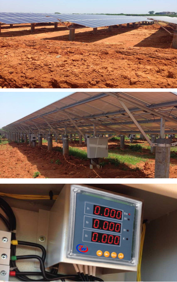 該項目用到我公司自主研發(fā)生產(chǎn)的智能型電流表260多臺,其電源經(jīng)特殊定制可達(dá)到500V。主要功能是精準(zhǔn)測量每個小方陣匯流的總電流,并將數(shù)據(jù)上傳到中控室。