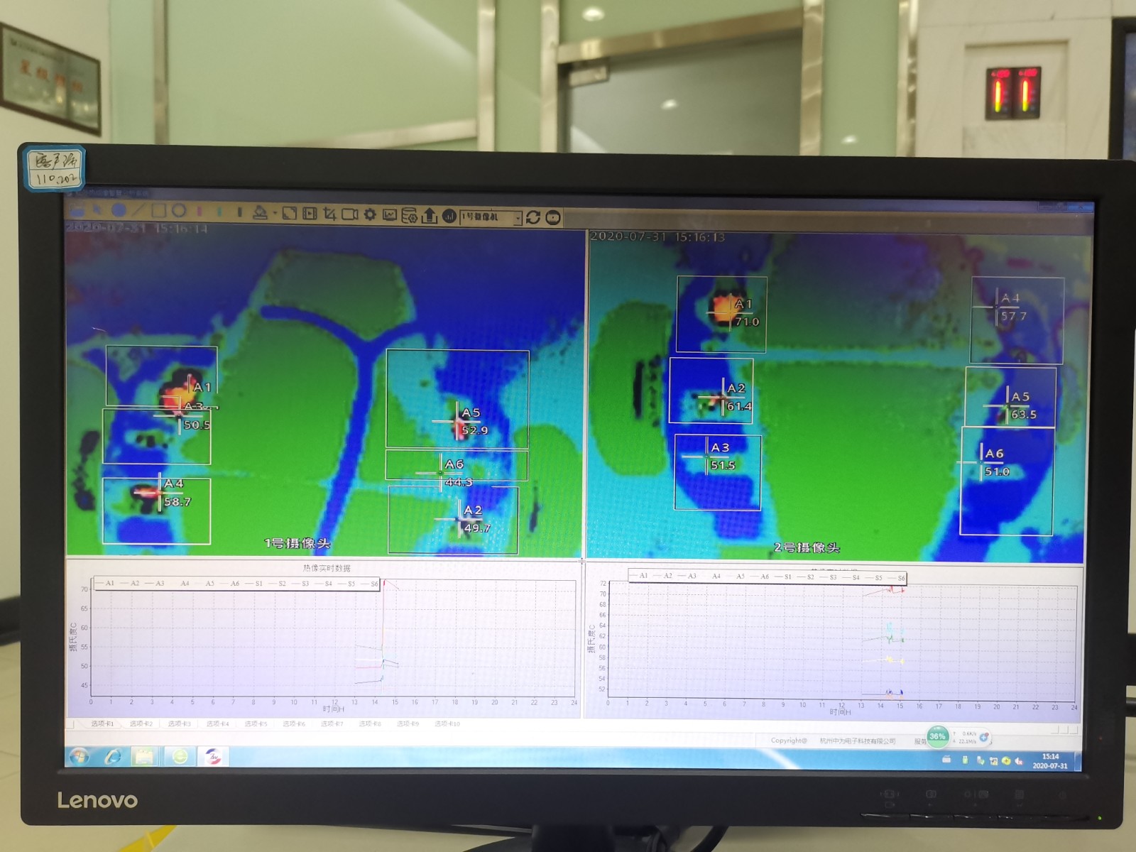 本公司研發生產的發電機碳刷紅外熱成像智慧分析系統,應用基于計算機網絡和互聯網的云平臺技術,在國民經濟各個領域推廣應用,解決了大量設備運行過程中熱性故障和缺陷問題。浙能溫州電廠已大范圍應用發電機碳刷紅外熱成像智慧分析系統,實時監測分析碳刷運行溫度,狀態,及時收到檢修預警,經濟效益及社會效益顯著。根據實際生產需要,本公司于2020年7月31日到廠進行發電機碳刷紅外熱成像智慧分析系統的軟件部分升級。升級后熱成像系統更加直觀、準確、快速、靈敏度進一步提高,對發電機碳刷的有關數據、環境參量、圖像監測更加清晰、簡潔;方便用戶實時、直接的了解和掌握各個關鍵設備的情況,并及時作出反應。滿足了電廠需要的監控智能化,集中化的發展需要;浙能溫州電廠反饋使用效果良好。