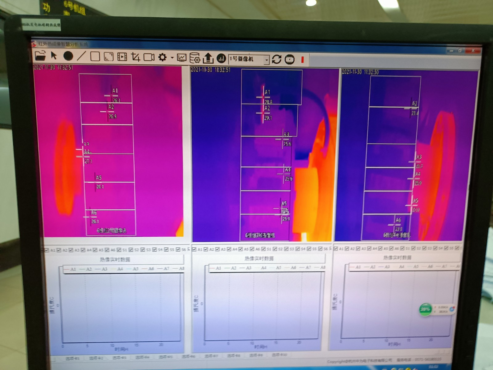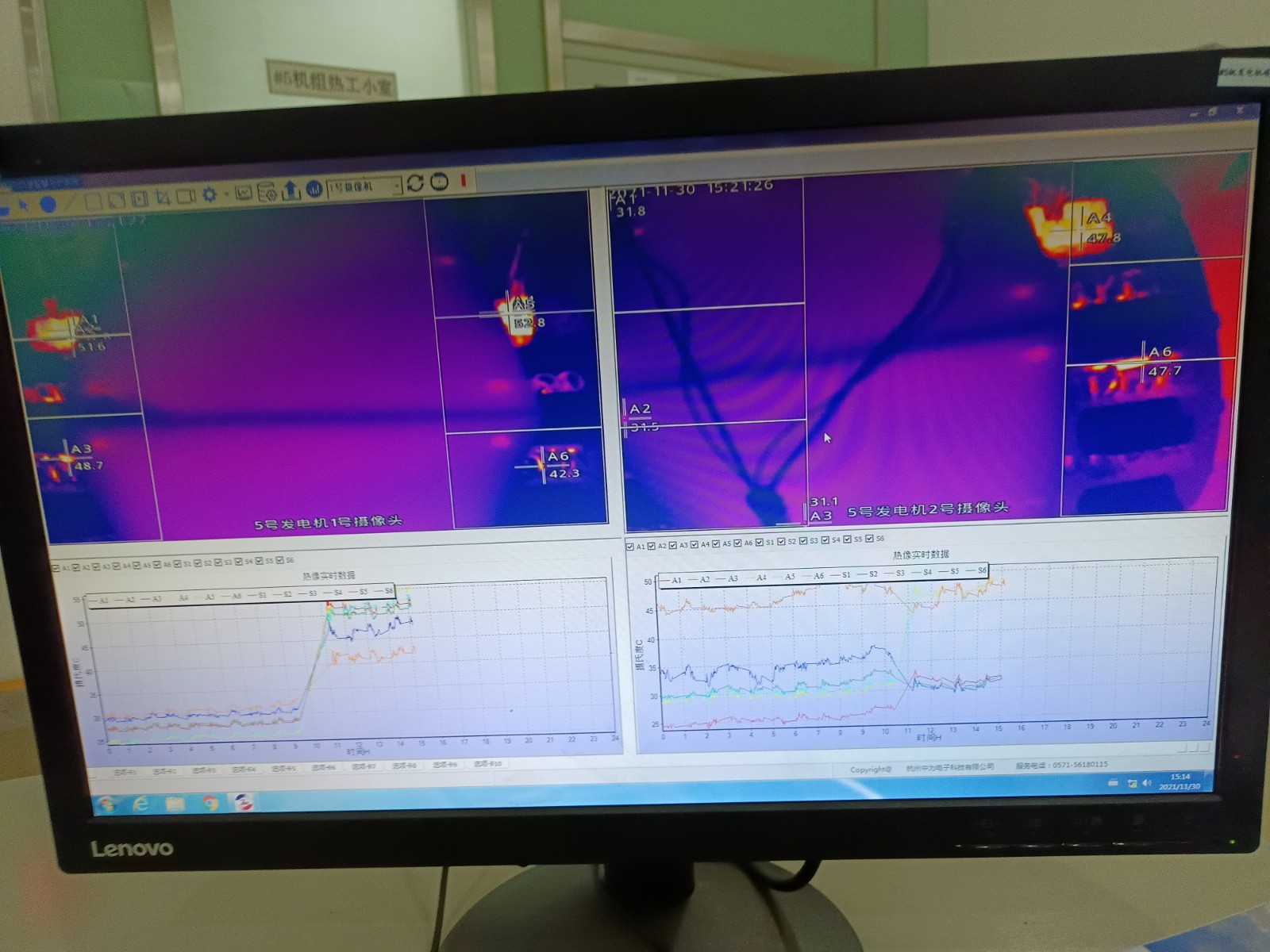 2021年11月,浙江浙能溫州發電有限公司5、6號發電機合計完成增補安裝發電機碳刷紅外監測熱像儀4套,畫面清晰穩定,溫度監控精準;并將現場溫度報警傳入DCS控制系統中,更好的監測碳刷運行情況。
