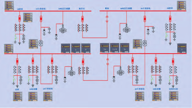 監(jiān)視整個(gè)系統(tǒng)運(yùn)行,顯示實(shí)時(shí)數(shù)據(jù),通過(guò)主接線圖顯示開關(guān)狀態(tài)和負(fù)荷量。實(shí)時(shí)記錄報(bào)警信息,顯示負(fù)荷、電壓的曲線、裝置運(yùn)行狀態(tài)等。遙測(cè)量越限監(jiān)視、遙信變位報(bào)警,事故信號(hào)及預(yù)告信號(hào)等擁有聲、光、色告警。監(jiān)控界面通過(guò)遙控、遙調(diào)命令對(duì)開關(guān)、斷路器等控制對(duì)象進(jìn)行遠(yuǎn)程遙控。具有人工置數(shù)和掛牌功能,方便設(shè)備安裝、調(diào)試、維護(hù)。